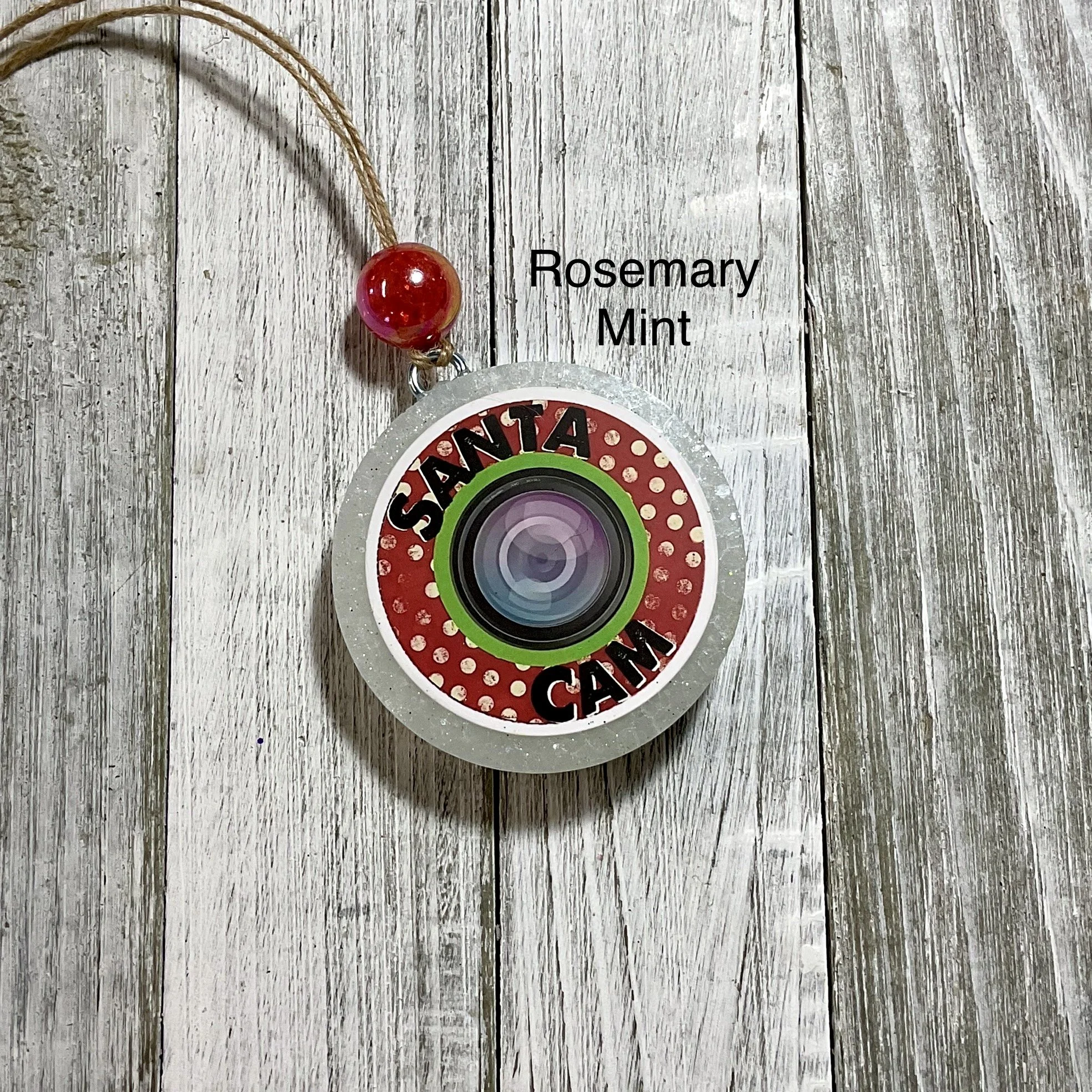 This Santa Cam freshie is scented in Rosemary Mint. The Freshie has glitter and a decorative bead on top.